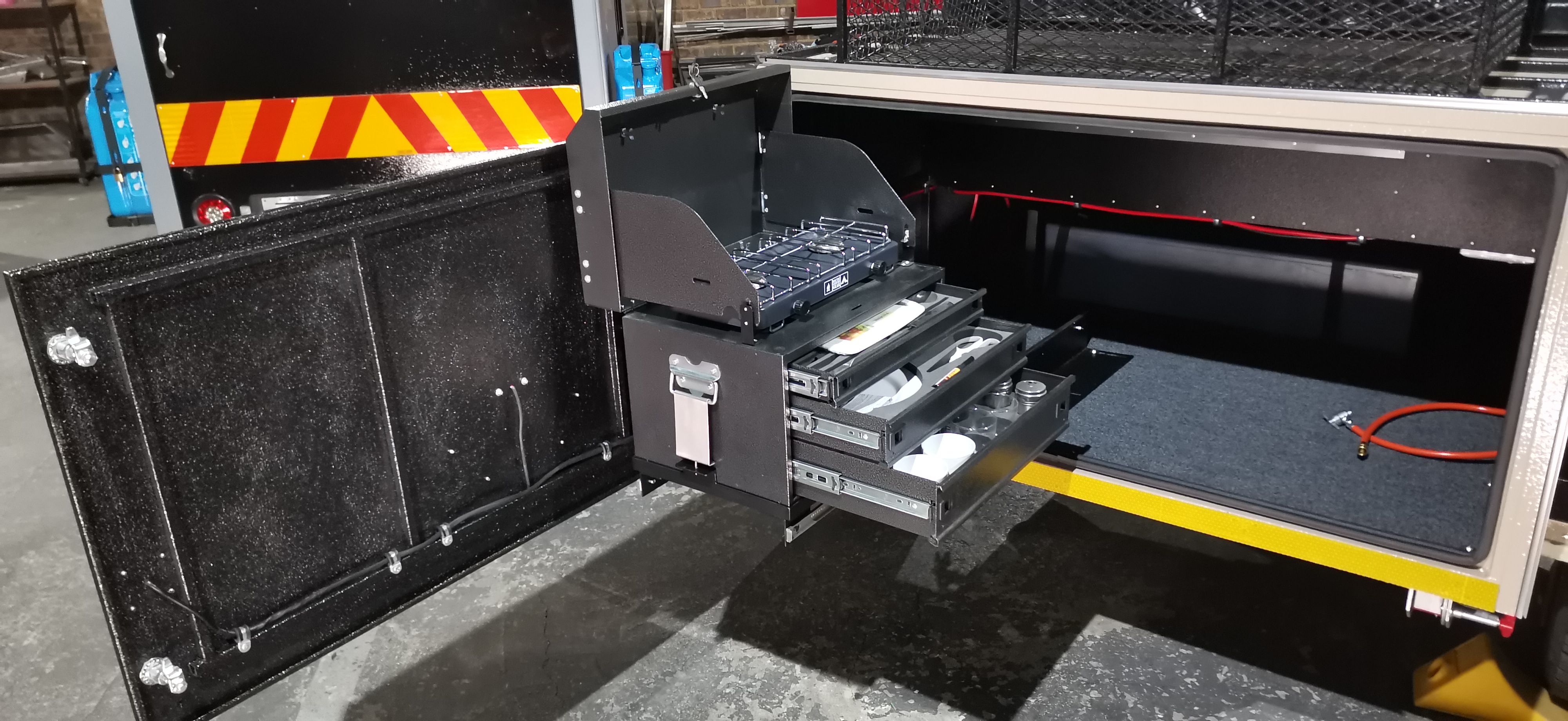 Fridge Slide: Yes, slide out – accommodates up to 90L National Luna or 81.5L SnoMaster