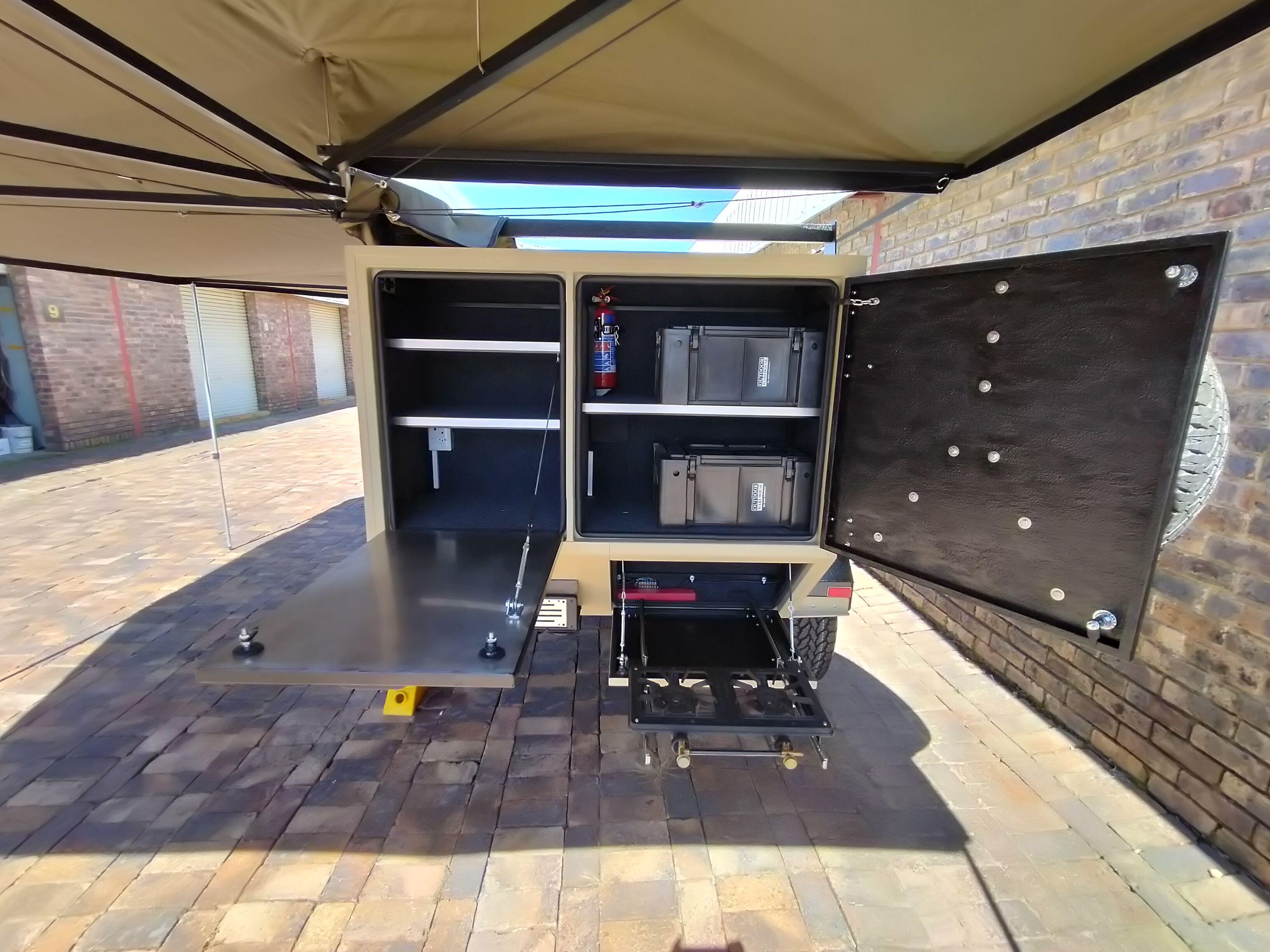 Cupboards: Yes (2 Shelves with canvas cover)